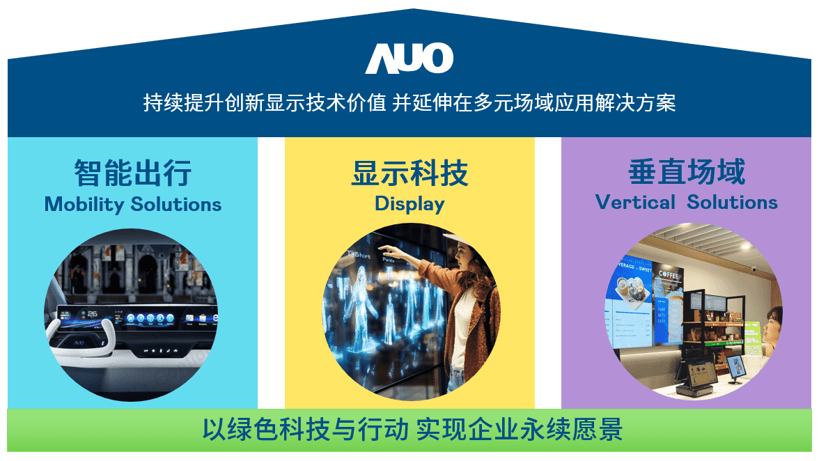 我们持续推动「双轴转型」,,在精进显示技术附加价值(Go Premium),,,,与深化垂直市场应用(Go Vertical)的策略下,,,对应尊龙集团的优势竞争力与趋势,,,我们奠定显示科技、、智慧移动、、、垂直场域三大永续营运支柱,,,在显示技术领域的根基之上,,延伸布局多元场域应用解决方案。。将先进显示科技助力智慧移动及垂直场域发展,,并以绿色科技与行动为实践,,,在转型之路上贯彻永续经营之愿景。。