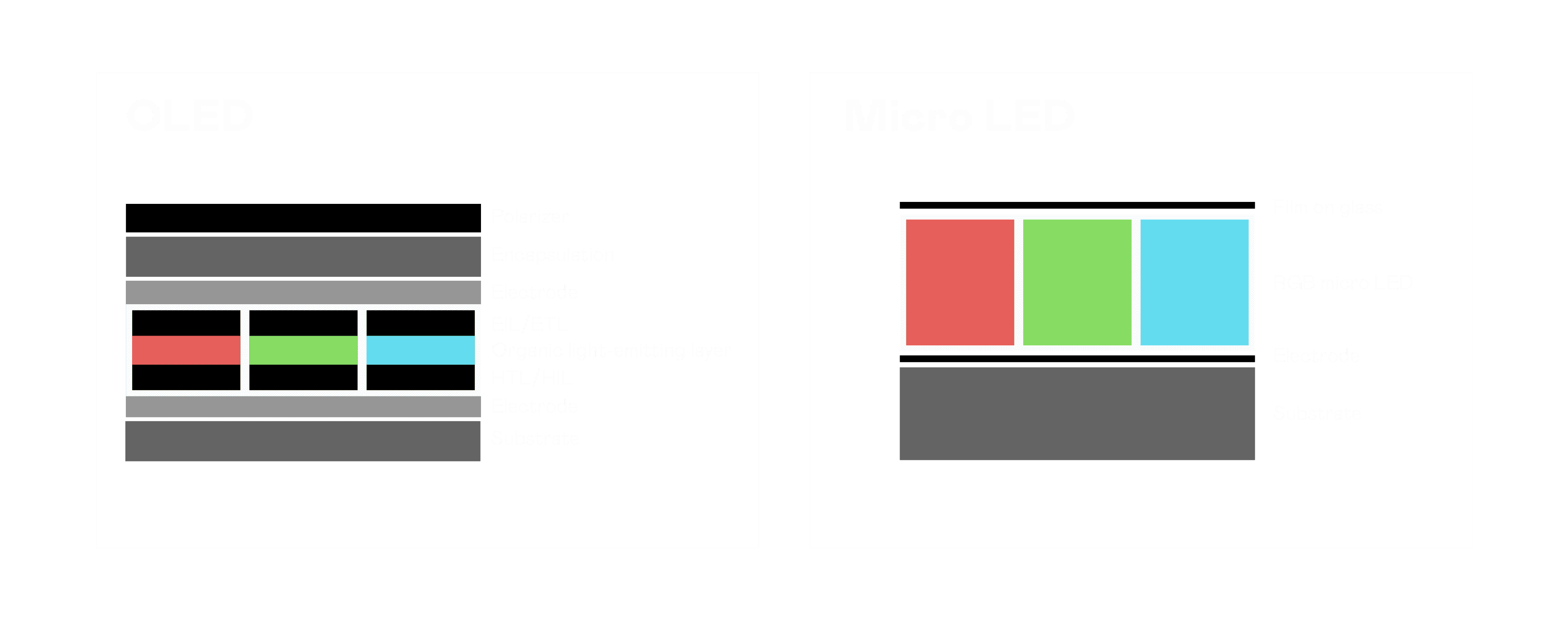 以 LED 做为显示画素,,可让 LED 的发光效率发挥到极致,,,,从而让显示器具备优异的亮度表现,,,,不论是在户外或室内,,,均具备出众的显示效果。。。同时,,,,与使用有机材料的 OLED 相比,,,LED 具备更稳定、、寿命更长的特性,,,不仅不会有画面烙印问题,,,而且更不容易出现故障、、、、坏点。。